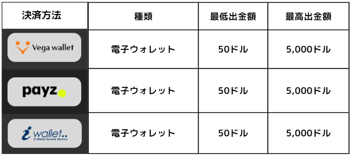 出金手数料は全て無料でどのウォレットも最低出金額と最高出金額は同じです![]()