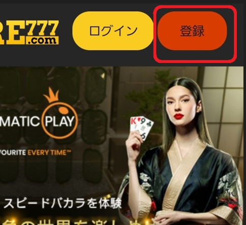 2,トップページ右上にある「登録」をクリック