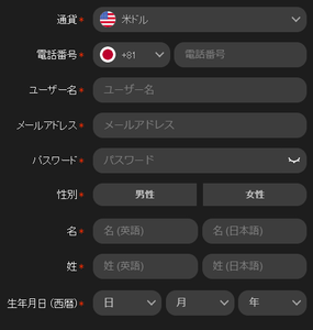 ・ユーザー名(エンパイアカジノの中で使う名前なので適当でOK)