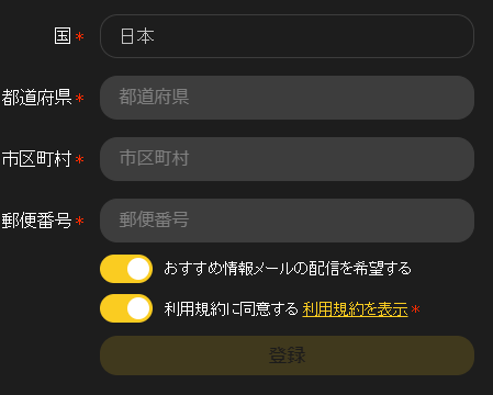 3,必要情報を順次入力し、利用規約を確認後「登録」をクリック